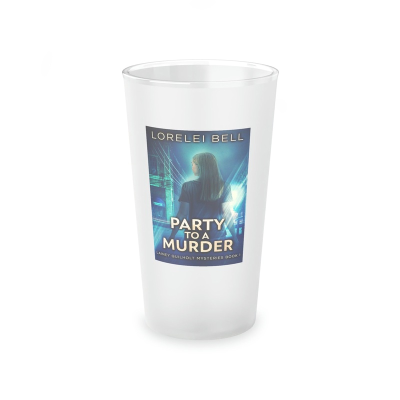 This frosted matte finish pint glass is versatile and dishwasher-safe. The cover art in this pint glass is from Party to a Murder's book, Party to a Murder.