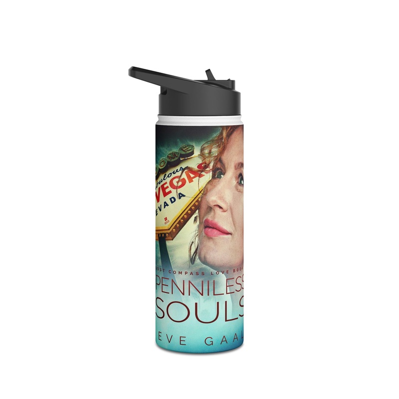 Quench your thirst in style with this 18oz stainless steel water bottle featuring a double-wall stainless steel build that keeps your drinks frosty for 24h and soothingly hot for 12h. This BPA-free, steel water bottle comes with a twist-on lid for easy sipping, making it excellent for daily use at work, at college, in the car, and beyond. The cover art in this water bottle is from Eve Gaal’s book, Penniless Souls.