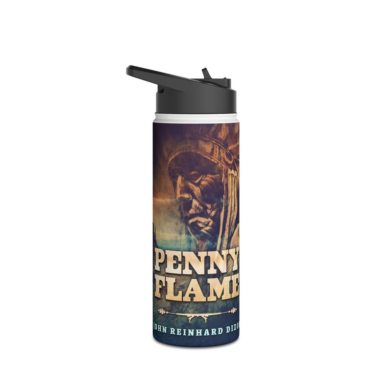 Quench your thirst in style with this 18oz stainless steel water bottle featuring a double-wall stainless steel build that keeps your drinks frosty for 24h and soothingly hot for 12h. This BPA-free, steel water bottle comes with a twist-on lid for easy sipping, making it excellent for daily use at work, at college, in the car, and beyond. The cover art in this water bottle is from John Reinhard Dizon’s book, Penny Flame.
