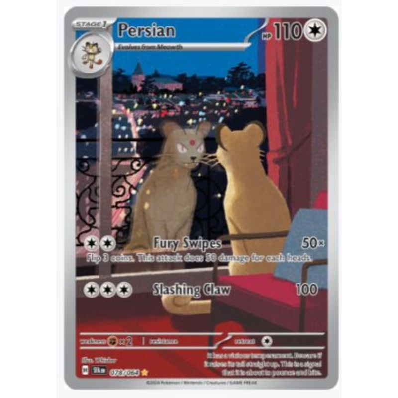 Card Number / Rarity:078/064 / Illustration RareCard Type / HP / Stage:Colorless / 110 / Stage 1Attack 1:[CC] Fury Swipes (50x)Flip 3 coins. This attack does 50 damage for each heads.Attack 2:[CCC] Slashing Claw (100)Weakness / Resistance / Retreat Cost:Fx