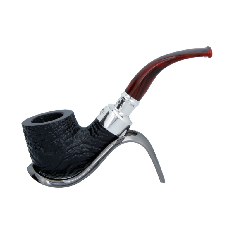 The Newgrange Spigot line offers a range of popular shapes, finished in a dark sandblast with a cumberland patterned acrylic stem, hallmarked sterling silver spigot mounts with fishtail mouthpieces.