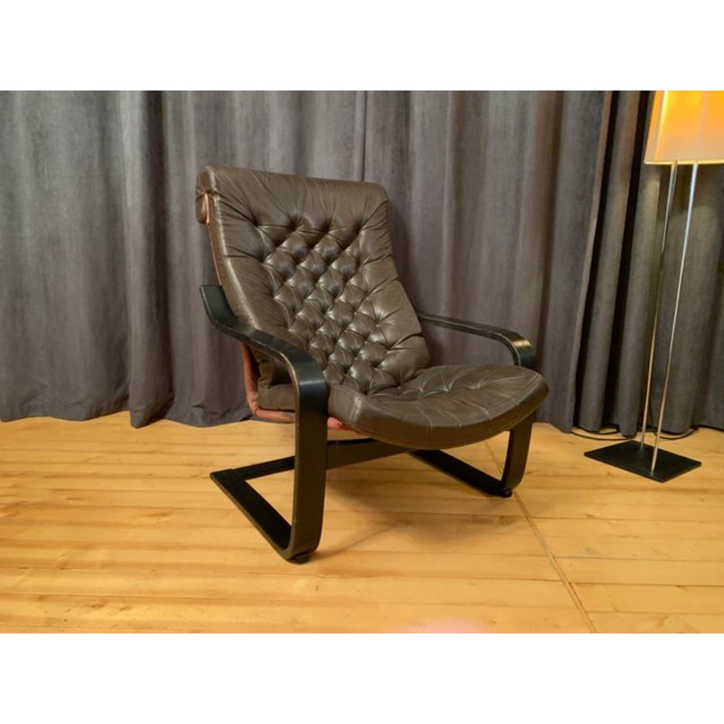 "Poem" armchair by Noboru Nakamura, Ikea from the 1970s. Fully original, original and in good condition. One of Ikea's iconic designs. Very good quality of workmanship, made of natural, high-quality leather, thick cotton fabric and beech wood. A classic of