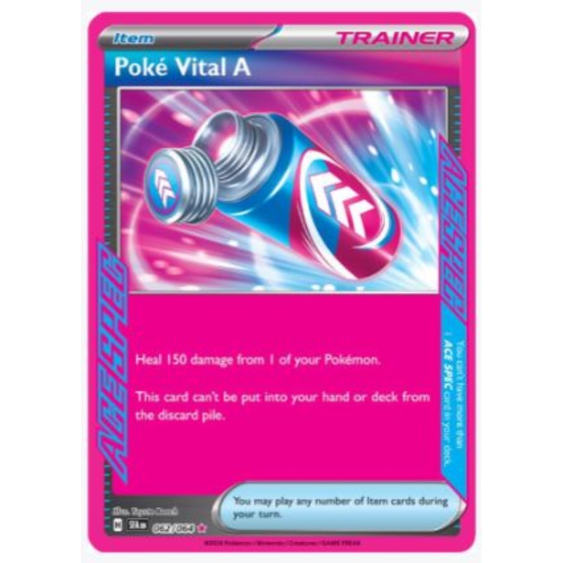Card Number / Rarity:062/064 / ACE SPEC RareCard Type / HP / Stage:Trainer - Item / /Card Text:Heal 150 damage from 1 of your Pokemon.This card can't be put into your hand or deck from the discard pile.