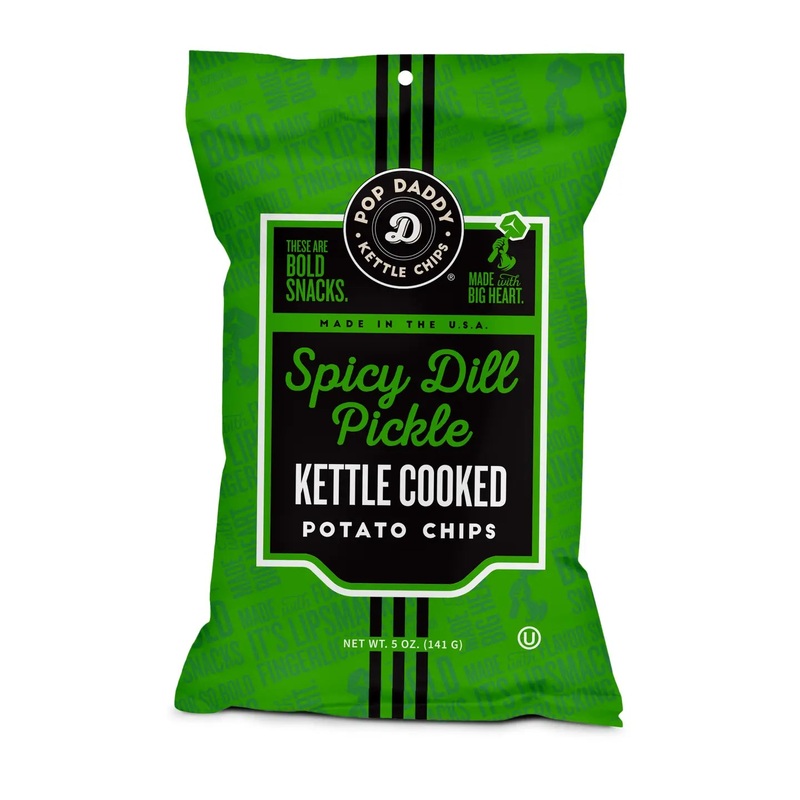 Pop Daddy Spicy Dill Pickle Kettle Cooked Chips – 5oz Bag (SNG12)