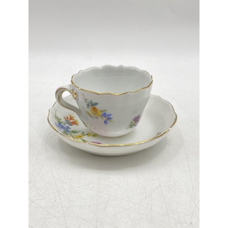 * a mocha / espresso set* in two parts* consisting of cup (68/35) and saucer (132/88)* Manufacturer: Meissen porcelain factory* Porcelain white* with flower decor* hand -painted* with gold rim* Creepered swords, dot and number with a floor brand* 1st Choic