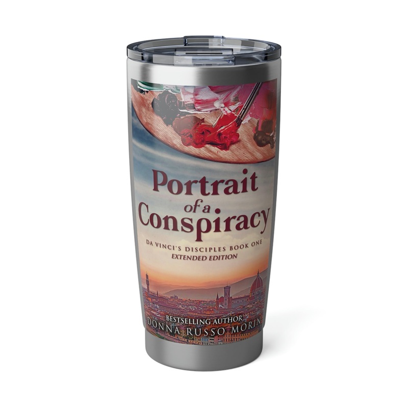 Minimize your plastic footprint with style. This tumbler fits perfectly into car cup holders, and the rubber gasket makes it spill-resistant on bumpier roads. The double-wall insulation makes sure drinks stay at the right temperature until the next pit stop. The cover art in this 20 oz tumbler is from Donna Russo Morin’s book, Portrait Of A Conspiracy.