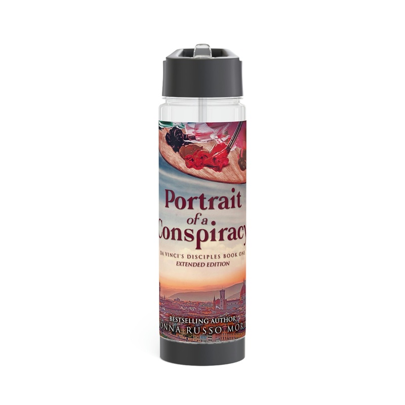 Add flavor and personality to your water with this infuser bottle. Twist the base off to access the infuser and add fruits, tea leaves, or anything you desire to enhance the flavor of your water. On the top, you’ll find a twist-on lid with a flip-top drinking sprout for a seamless drinking experience. This infuser is excellent for using at home, during outdoor excursions, or at the gym as a sports bottle. The cover art in this infuser water bottle is from Donna Russo Morin’s book, Portrait Of A Conspiracy.