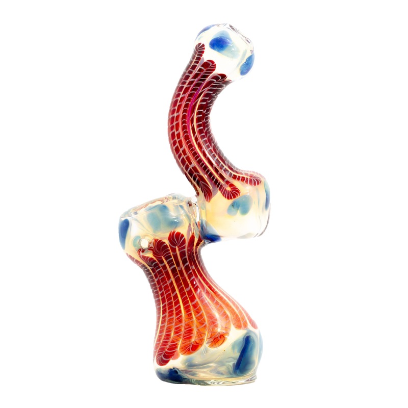 Conjure up a potion with this bubbler 7-inch glass bubbler Made of hand blown borosilicate glass Artistic fire design that looks one-of-a-kind Flat base and easy to store Travel-friendly Description Do you often need to feel inspired or stimulated when you