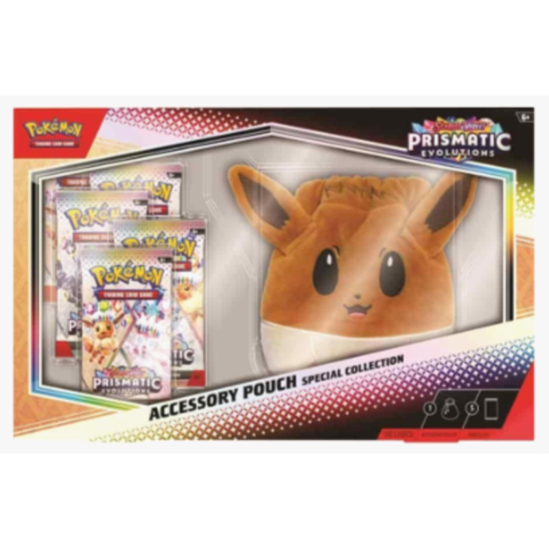 The Pokmon TCG: Scarlet & VioletPrismatic Evolutions Accessory Pouch Special Collection includes: