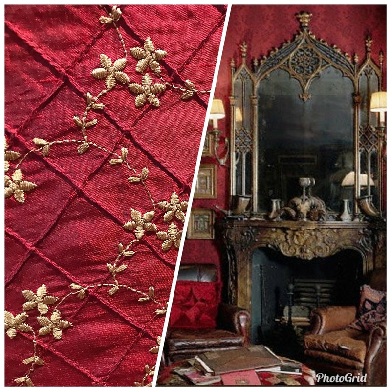 This incredible 100% Silk Dupioni decorating fabric is divine! In a beautiful shade of dark red with embroidered floral and quilted motif, this silk makes wonderful fabric for pillow shams, duvets, and drapery. Sold by the yard. 55 wide. Will combine shipp