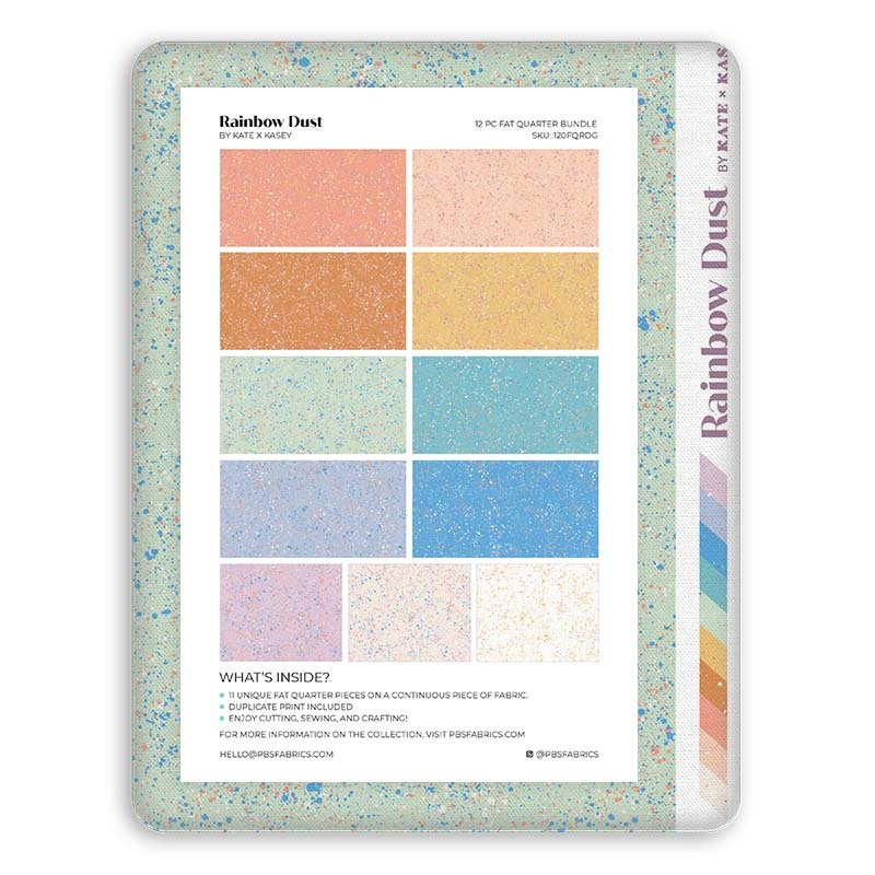 Make a Rainbow Connection! This isnt our first fabric collection with either Kasey Free or Kate Aurelia, but it is our first one with both of them together! Their love of bright, retro colors and elegant simplicity combine perfectly in these blender prints.Each color is available with two print variations choose either a gentle speckling with a lot ofbackground color, or a heavier splatter Jackson Pollok would love, perfect for smaller projects.Use these trend-worthy pastels to add something special to a minimal solids quilt, or pair them with your favorite prints!Theyre also perfect for DIY home dcor for anywhere you need a pop of color.Pair them with pompoms for an easy throw pillow, or usethem for a farmhouse-style table runner.