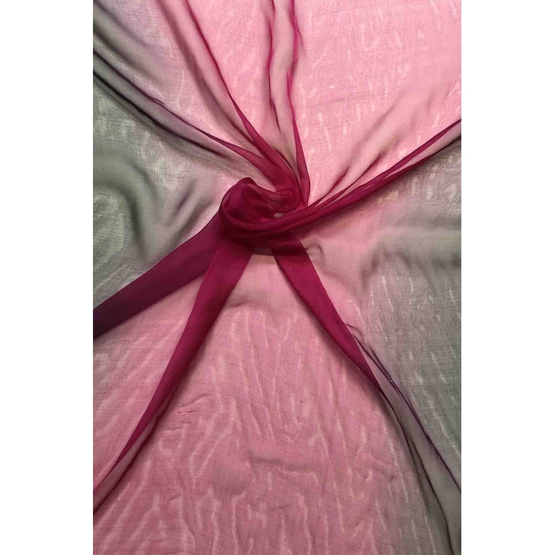 The ombre silk chiffon has a flowy drape movement that makes it ideal to create eveningwear gowns, dresses and tunics. This is a very soft and thin fabric with colors fading from one to the next which adds color and beauty to any of the pieces made from it