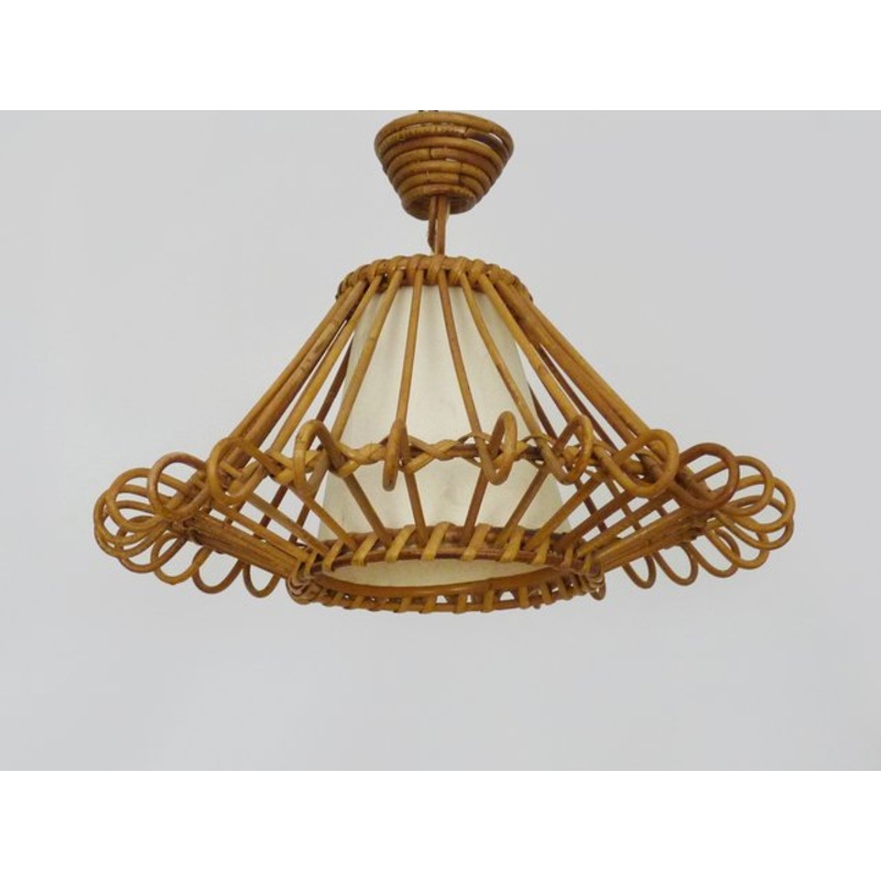 Louis Sognot rattan and bamboo pendant light. 50sRattan and bamboo pendant light by Louis Sognot.In very good condition for its age, some very slight traces of time on the rattan.The electricity is vintage. In working order.B22 bayonet bulb (not supplied)H