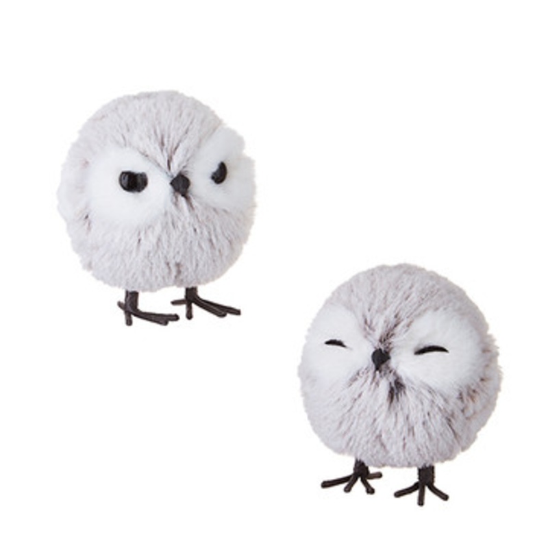 HOO’S ready for Christmas? We are! These little owls are ready to celebrate the holidays! Each one is a fluffy grey with black features and whites around the eyes! Place them through your tree or through your garland!Made by Raz Imports. Sold as a set of 2.Made of polyester and foam.Dimensions: 4″.Item #: 4203486