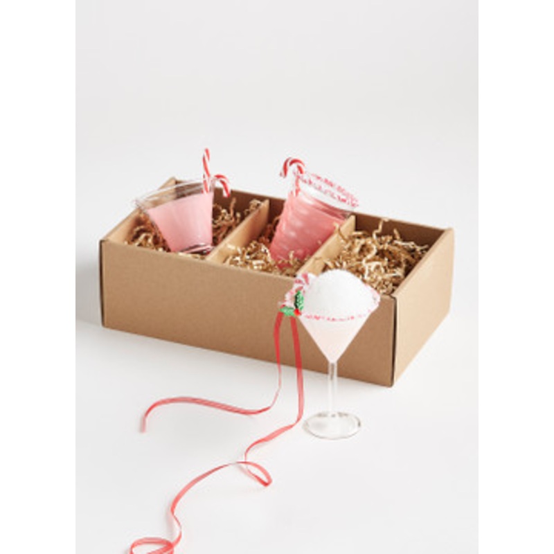 We love to here the “tink, tink” of glasses at Christmas cocktail hour! This set of ornamentsfeature 3 light pink cocktails in different shaped glass with a crushed peppermint candy rim or peppermint candy garnish! This would make an absolutely fabulous hostess gift!Sold as a box of 3.Sold as a box of 3.Made by Raz Imports.Made of glass.Dimensions:3.5″L X 3″W X 5.25″H; 3.75″L X 3″W X 4″H; 3.5″L X 3″W X 3.75″H.Item #: 4320914