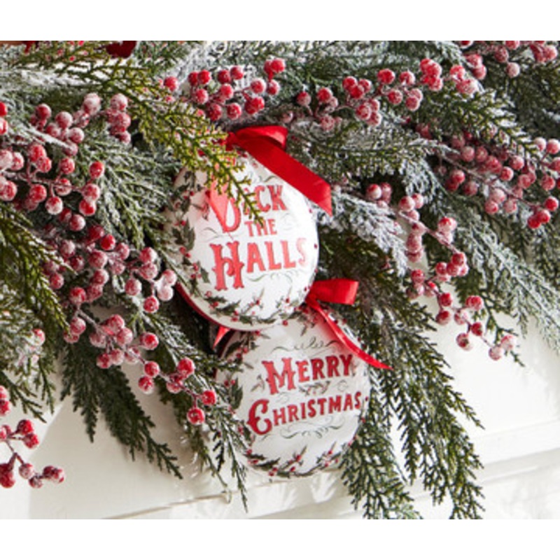Add some Christmas cheer to your home with these cute as can be ornaments! Each one features a glass disc with a frame of holly leaves and berries and a holiday sentiment in bold red lettering!Each sold individually OR as a set of 2.Made by Raz Imports.Made of glass.Dimensions:5″L X 1.5″W X 5″H.Item #: 4324605
