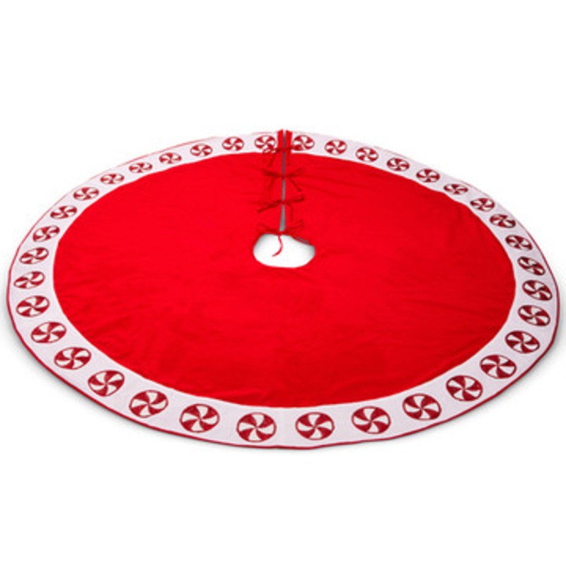 NEW for 2025 Brighten up your Christmas dcor with this cheerful peppermint-themed tree skirt! Featuring a bold red base with crisp white trim and playful red and white peppermint candy accents, its the perfect finishing touch for the base of your Christmas