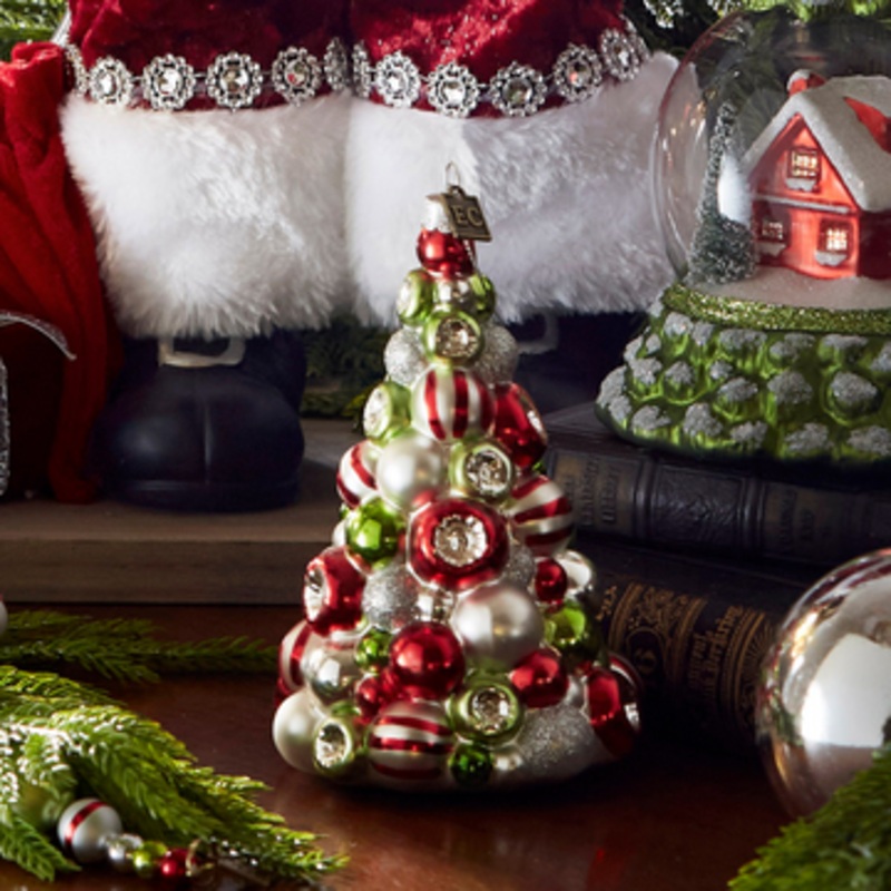 This little tree is made up of brightly colored red and green ornaments with silver balls mixed in! Eric Cortina is known for making the most gorgeous, unique Christmas ornaments for the holidays!Made by Raz Imports.Made of glass.Dimensions:3.5" D X 5.5" H