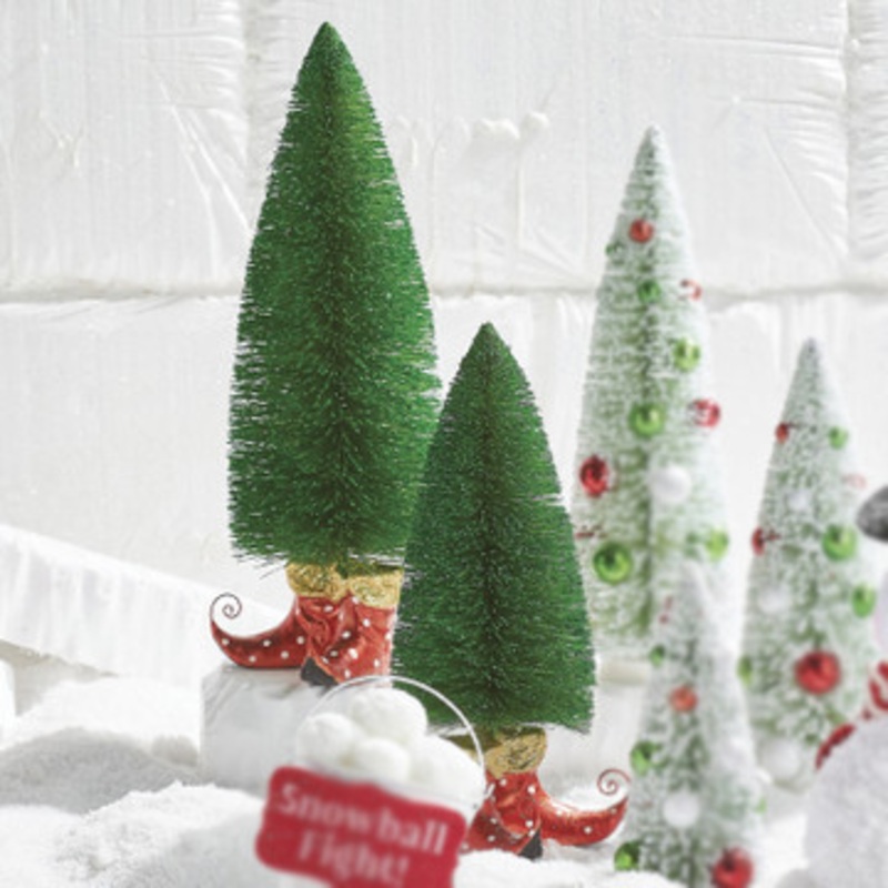 Raz Set of 2 Green Glitter Bottle Brush Tree with Elf Shoes 4227111