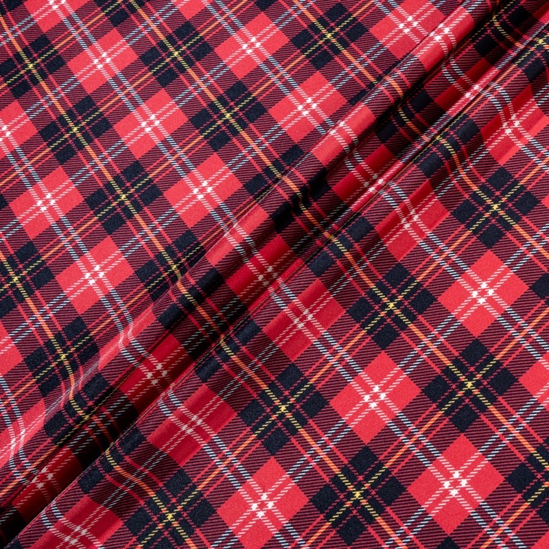 A bright red and multi-coloured tartan printed silk twill by Claudio Fioretti. This pure silk is ideal for dresses, skirts and blouses. With immediate availability and offered in a variety of colours and designs.