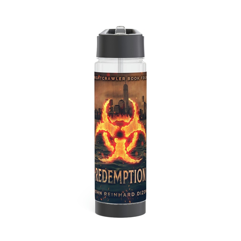 Add flavor and personality to your water with this infuser bottle. Twist the base off to access the infuser and add fruits, tea leaves, or anything you desire to enhance the flavor of your water. On the top, you’ll find a twist-on lid with a flip-top drinking sprout for a seamless drinking experience. This infuser is excellent for using at home, during outdoor excursions, or at the gym as a sports bottle. The cover art in this infuser water bottle is from John Reinhard Dizon’s book, Redemption.