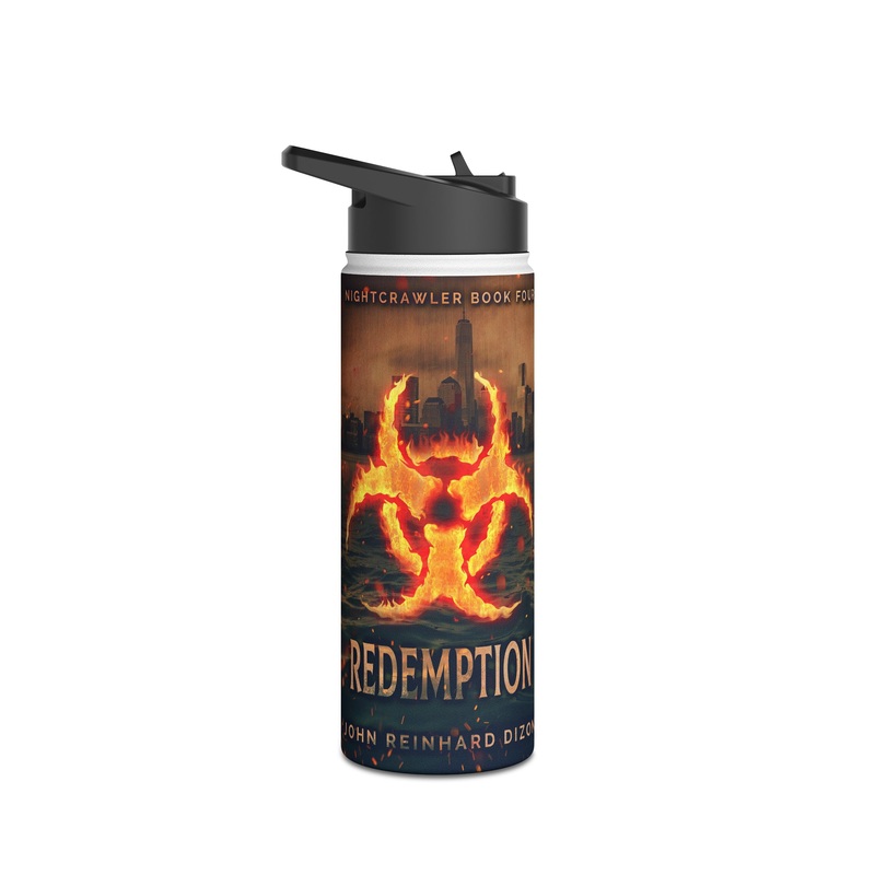 Quench your thirst in style with this 18oz stainless steel water bottle featuring a double-wall stainless steel build that keeps your drinks frosty for 24h and soothingly hot for 12h. This BPA-free, steel water bottle comes with a twist-on lid for easy sipping, making it excellent for daily use at work, at college, in the car, and beyond. The cover art in this water bottle is from John Reinhard Dizon’s book, Redemption.