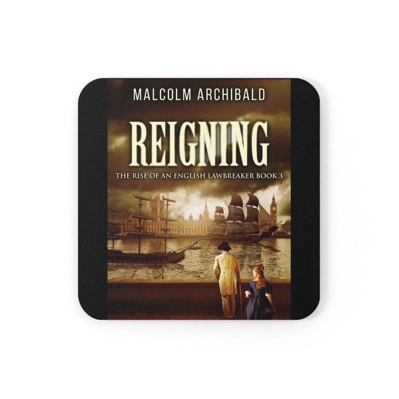 These coasters are made with a high-gloss top and feature a cork back to prevent sliding, and each order comes with a set of four coasters. The cover art in these coasters is from Malcolm Archibald's book, Reigning.