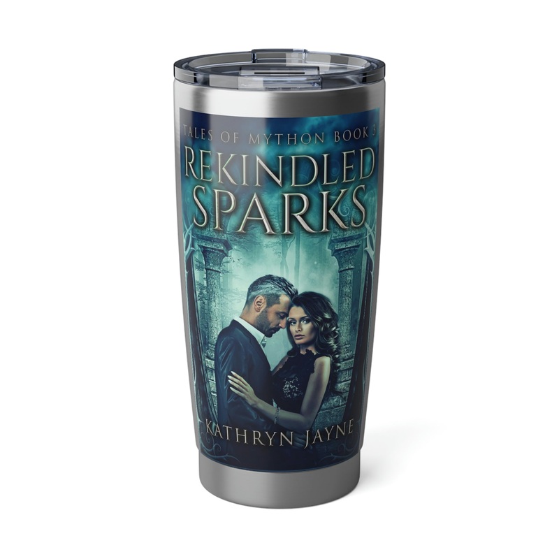 Minimize your plastic footprint with style. This tumbler fits perfectly into car cup holders, and the rubber gasket makes it spill-resistant on bumpier roads. The double-wall insulation makes sure drinks stay at the right temperature until the next pit stop. The cover art in this 20 oz tumbler is from Kathryn Jayne’s book, Rekindled Sparks.