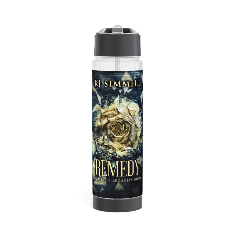Add flavor and personality to your water with this infuser bottle. Twist the base off to access the infuser and add fruits, tea leaves, or anything you desire to enhance the flavor of your water. On the top, you’ll find a twist-on lid with a flip-top drinking sprout for a seamless drinking experience. This infuser is excellent for using at home, during outdoor excursions, or at the gym as a sports bottle. The cover art in this infuser water bottle is from KJ Simmill’s book, Remedy.