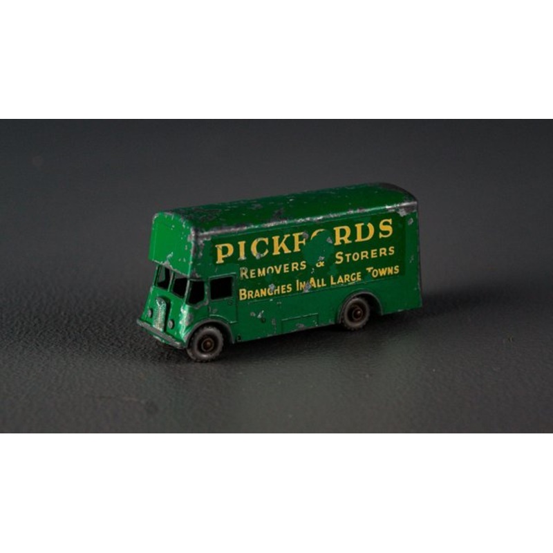 Old Pickford Bus car as a toy. from Matchbox from Lesney Series No 46, around 1960. In original condition, with wear consistent with age and use, a beautiful patina, a unique piece that will not be available again. Materials: metal, plastic.
