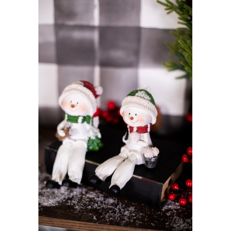 Spruce up some of your shelves for the holiday season with some playful 4.5″ shelf sitters. These charismatic characters have a cheerful smiles, cozy winter hats and scarfs, and little black boots. The red and green accents will allow these snowmen to provide the finishing touches for your whimsical accent pieces, ribbon, and sprays with their adorable details.