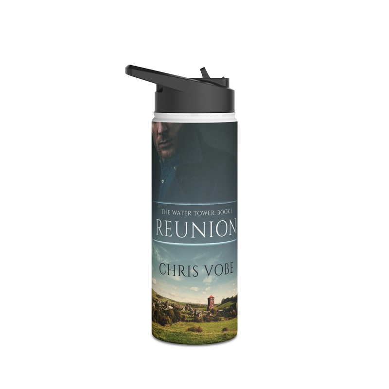 Quench your thirst in style with this 18oz stainless steel water bottle featuring a double-wall stainless steel build that keeps your drinks frosty for 24h and soothingly hot for 12h. This BPA-free, steel water bottle comes with a twist-on lid for easy sipping, making it excellent for daily use at work, at college, in the car, and beyond. The cover art in this water bottle is from Chris Vobe’s book, Reunion.