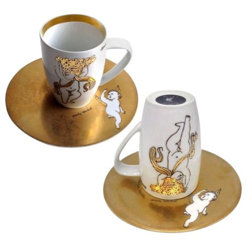 Rosenthal Andy Warhol Golden Angels Latte Macchiato Cup and Saucer, 1980s, Set of 2 for sale at Pamono