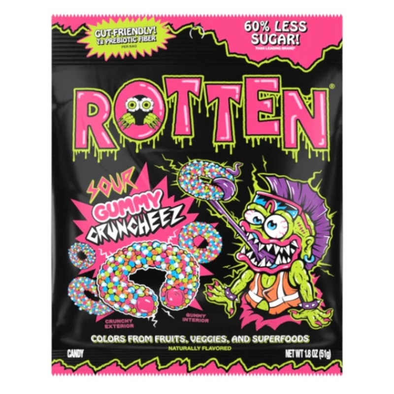 Dont let the name fool youRotten Sour Gummy Cruncheez are anything but bad! These next-level gummies combine a crunchy outer shell with a juicy, chewy gummy center for a texture explosion thats totally addictive. Made with less sugar than traditional gummi