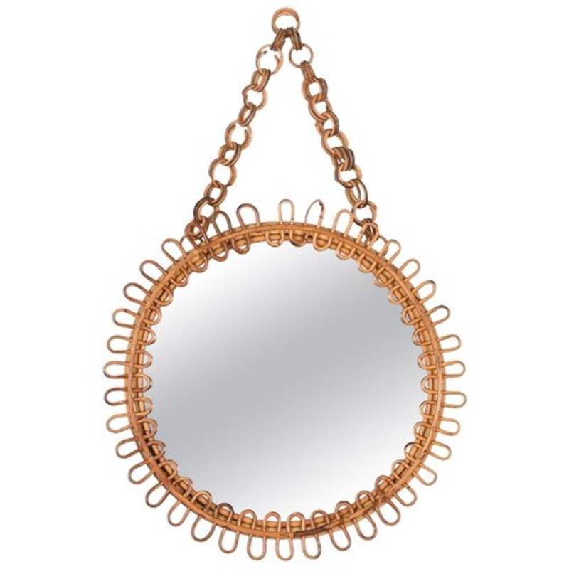 Round Curved Rattan and Bamboo Mirror with Chain attributed to Franco Albini, Italy, 1960s for sale at Pamono