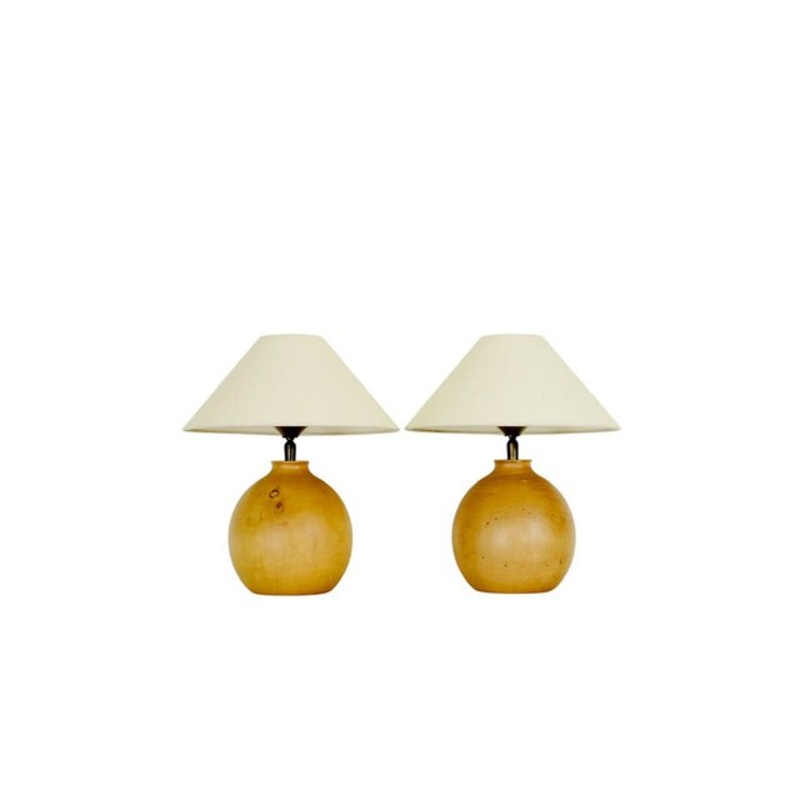 Be the first to review “Round Pine Wood Table Lamps, 1970s, Set of 2 for sale at Pamono”