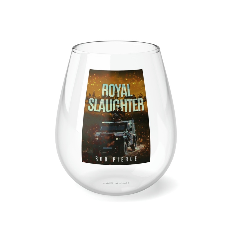 Whether it’s weddings, parties, or beautiful evenings with friends and family, this stemless glass wine fits right in. With its sleek design, each glass holds 11.75oz of your favorite wine. The cover art in this wine glass is from Rob Pierce’s book, Royal Slaughter.