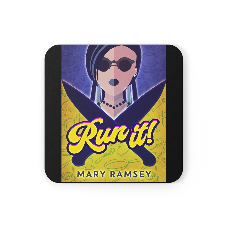 These coasters are made with a high-gloss top and feature a cork back to prevent sliding, and each order comes with a set of four coasters. The cover art in these coasters is from Mary Ramsey's book, Run It!.