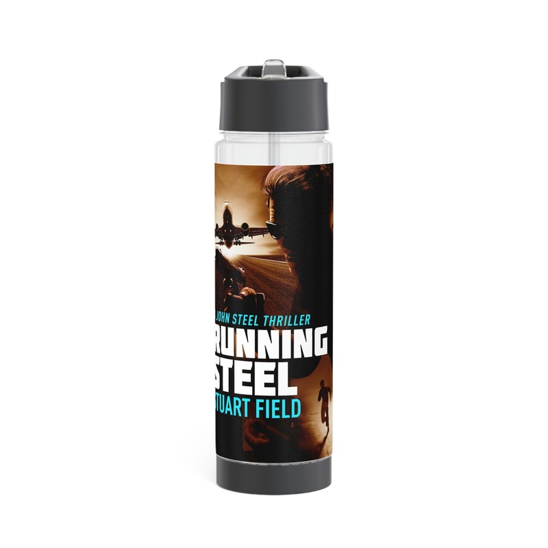 Add flavor and personality to your water with this infuser bottle. Twist the base off to access the infuser and add fruits, tea leaves, or anything you desire to enhance the flavor of your water. On the top, you’ll find a twist-on lid with a flip-top drinking sprout for a seamless drinking experience. This infuser is excellent for using at home, during outdoor excursions, or at the gym as a sports bottle. The cover art in this infuser water bottle is from Stuart Field’s book, Running Steel.