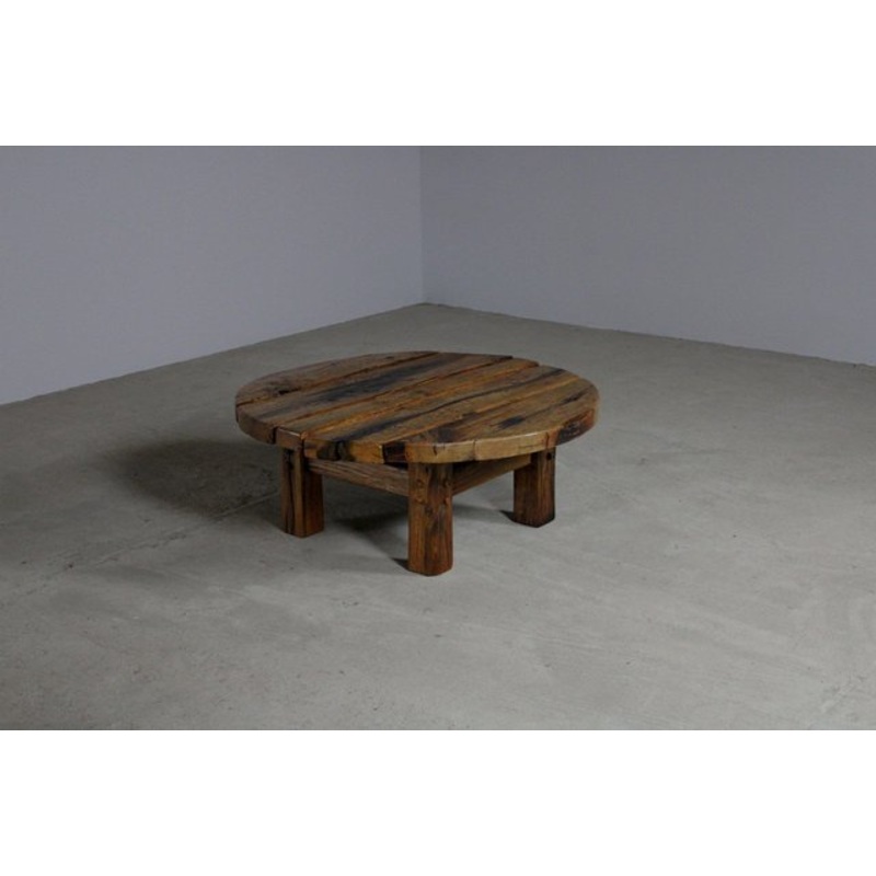 Rustic round coffee table The table is in a good condition with some traces of usage normal to its age.