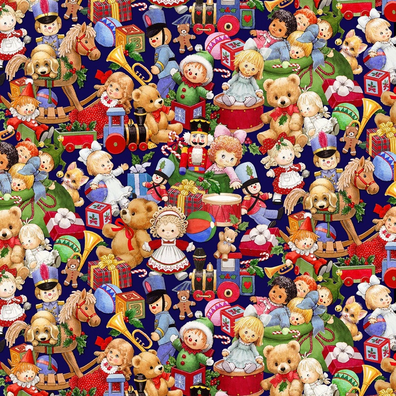 Santa's List Packed Toys in Midnight Blue by Morehead Inc. for Elizabeth's Studio 44 inch wide 100% Cotton Quilting Fabric ES-4131-MIDNIGHT44 inches wide 100% Quilting Cotton FabricCare: Machine Wash Cold / Easy CareThis cotton print fabric is perfect for