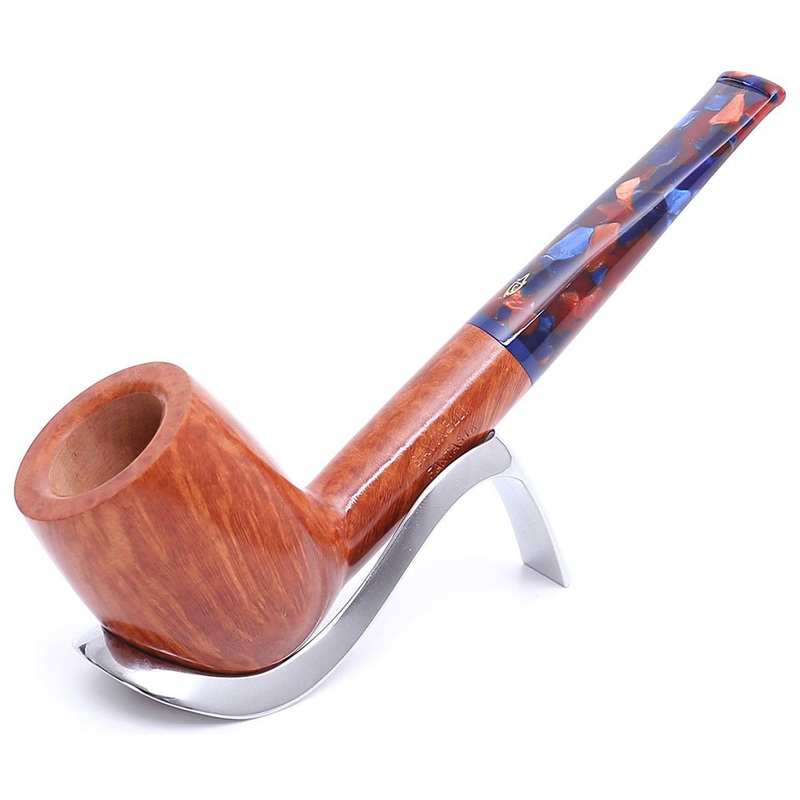 This series is available in two finishes, smooth natural and a brown polished rustication, in eight different shapes. A special acrylic stem with a "craquel"" texture mixing the colors brown, blue and white. Length: 148 mm Height: 54 mm Chamber Diameter: 2