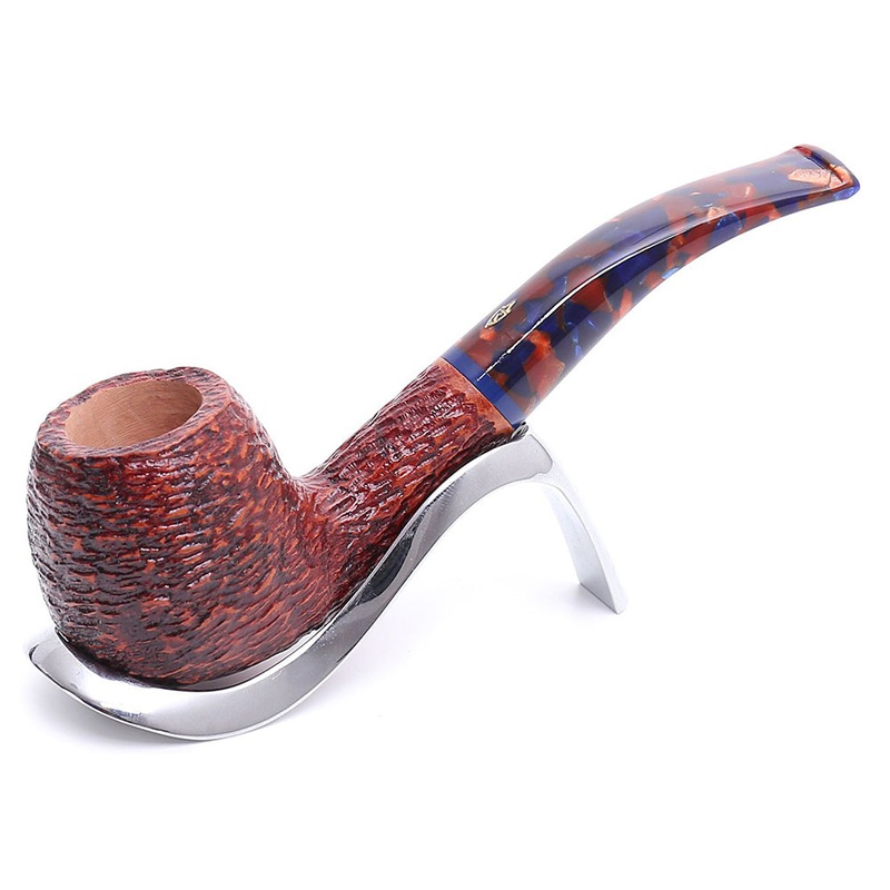 This series is available in two finishes, smooth natural and a brown polished rustication, in eight different shapes. A special acrylic stem with a "craquel"" texture mixing the colors brown, blue and white. Length: 135 mm Height: 43 mm Chamber Diameter: 2