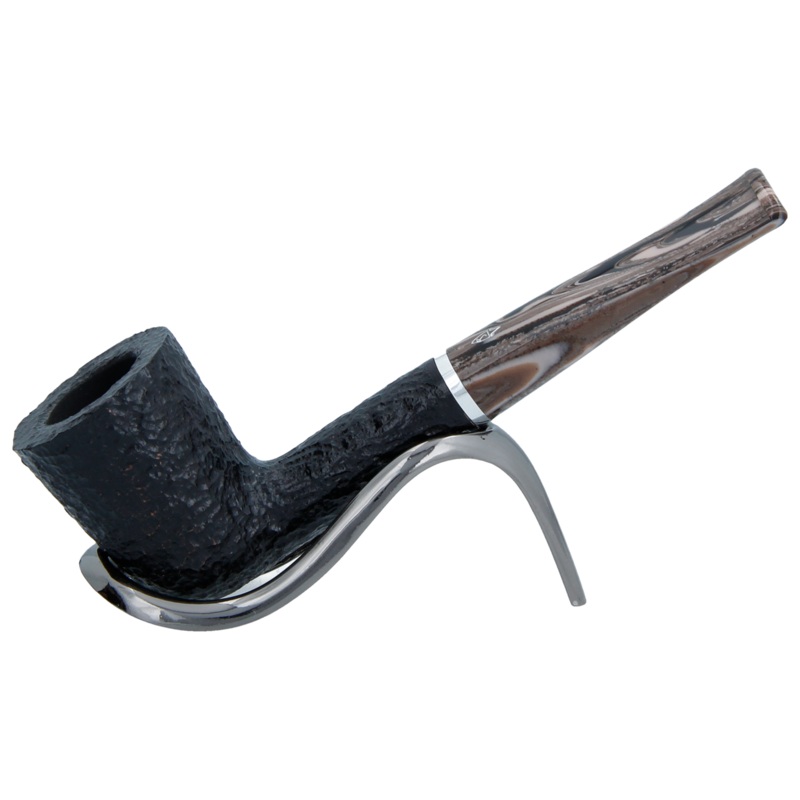 The Savinelli Morellina Rusticated briar series has a black rusticated bowl and a single chrome ring separating a nice swirly, smokey effect, acrylic stem. The shape 409 pipe is a straight dublin. Well balanced and comfortable in the hand the years of craftsmanship show through, this is a pipe that will give years of pleasure.