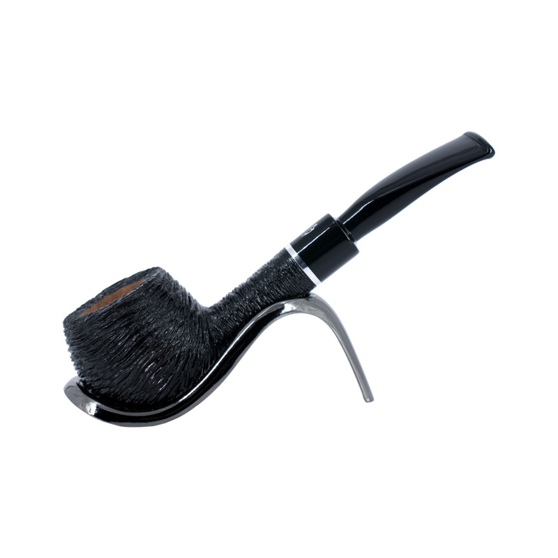 Savinelli Otello Black Rusticated Briar Pipe - Shape 315 (6mm) The rustication on this pipe is in a linear style which makes for an unusual (not often seen) but visually pleasing finish. The black acrylic stem matches the black rustication and a narrow chr