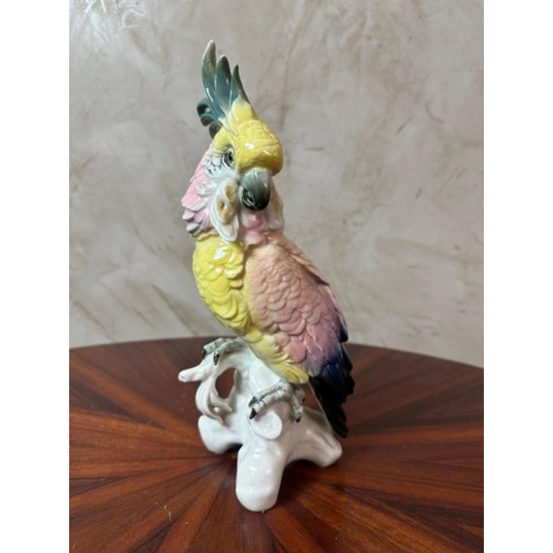 Beautiful polychrome Saxe porcelain parrot from the Karl Ens factory (Thuringia), stamped under the base. Dates from the beginning of the 20th century. Magnificent pink, yellow and green color. Perfect condition. For lovers of beautiful decorative objects.