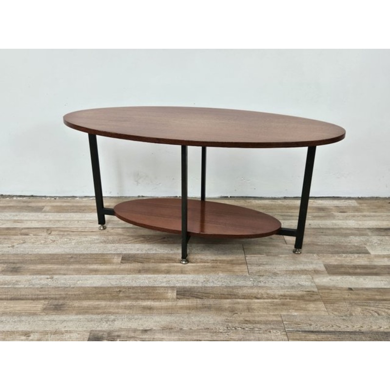 1960s Scandinavian oval coffee table in teak wood with iron structure and adjustable feet.Height of first shelves 11.5cm Polished with shellac, it shows normal signs of age and use. Design Period 1960 to 1969 Production Period 1960 to 1969 Country of Manuf