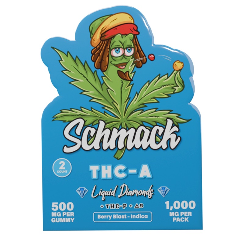 Potent Schmacked 2 Count THC-A Gummies! 2 gummies per pouch 500mg THC-A per gummy Liquid Diamonds 1000mg Delicious and potent Fun to share Resealable bag Description Indulge in some delicious and potent fun with Schmack Liquid Diamonds THC-A Gummies! Each