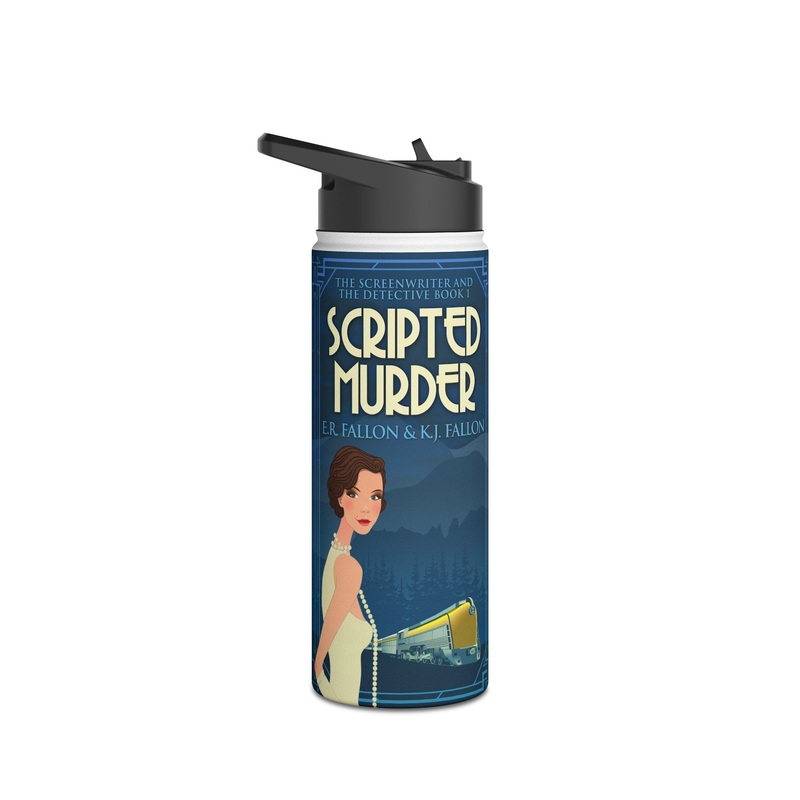 Quench your thirst in style with this 18oz stainless steel water bottle featuring a double-wall stainless steel build that keeps your drinks frosty for 24h and soothingly hot for 12h. This BPA-free, steel water bottle comes with a twist-on lid for easy sipping, making it excellent for daily use at work, at college, in the car, and beyond. The cover art in this water bottle is from Scripted E.R. Fallon and K.J. Fallon’s book, Scripted Murder.