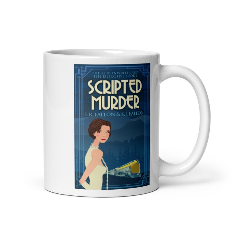 Whether you’re drinking your morning coffee, evening tea, or something in betweenthis mug’s for you! With beautiful cover art from E.R. Fallon, and K.J. Fallon’s book, Scripted Murder, the mug is sturdy and glossy with a vivid print that’ll withstand the microwave and dishwasher.